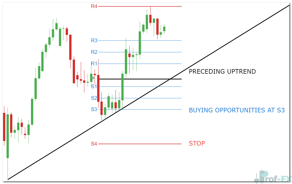 In range trading, the primary focus is the area between S3 and R3, commonly referred to as the daily trading range.
