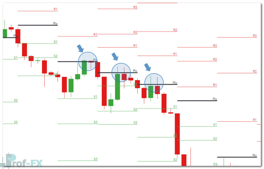 During a well-established downtrend, pivot support levels (such as S1 and S2) often act as dynamic resistance after price breaks below them. Traders may look for: