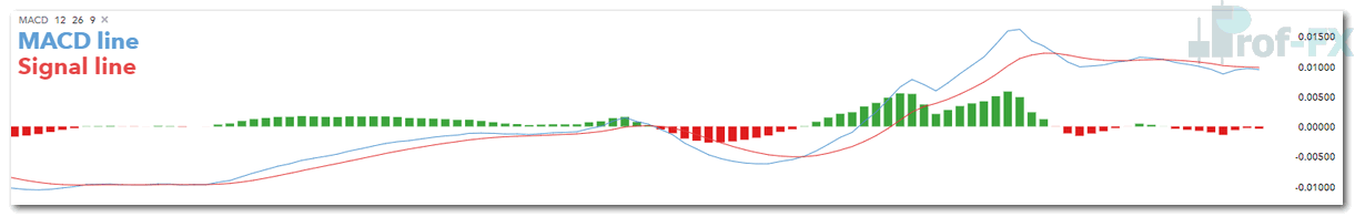 - Histogram (commonly shown in green), which represents the difference between the MACD line and the signal line