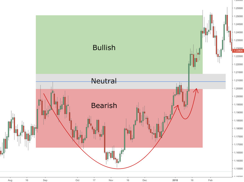 To go from that bias to a position is an entirely different matter! Potentially, the direction is clear but the price is too volatile to enter. Or you have a conditional bias: the price first needs to cross a specific level to change your bias from neutral to bullish (or bearish). If you trade specific chart patterns, you might be waiting for that chart pattern to emerge.