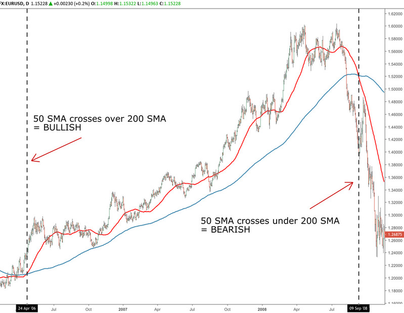 Popular moving average crosses are the 20 and 50, 50 and 100, 50 and 200 and the 100 and 200. Again, these are not the golden grail of trading but they can, however, help you with establishing a bias.