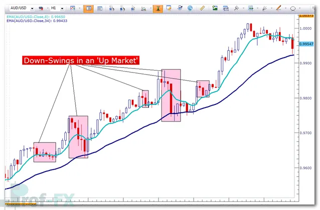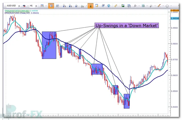 In a downtrend, price declines are often interrupted by temporary upward corrections, commonly referred to as up-swings.