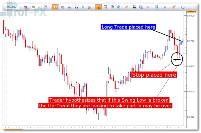 Once a trader is already in a position, the same swing-based logic can be applied to trade management.