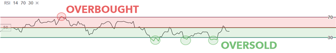 RSI indicator showing overbought, oversold, and mid-line levels