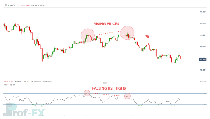 USD/JPY chart showing bearish RSI divergence