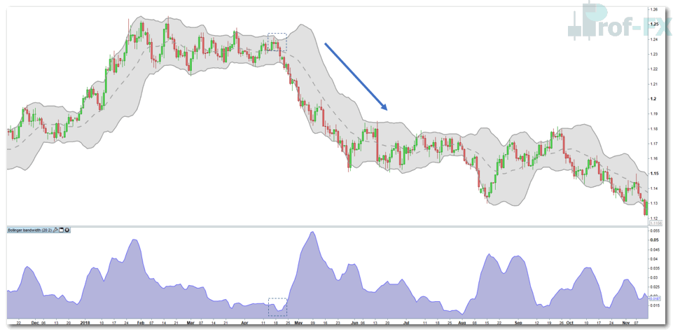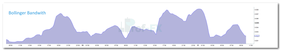 - Contracting Bandwidth (low volatility) often signals market consolidation