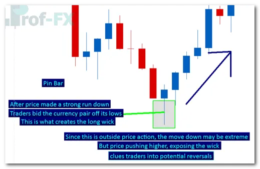 Much like Pinocchio’s nose, the long wick of a pin bar can signal that the market briefly “lied” about direction. Price attempted to move beyond a level, but that move was rejected before the candle closed.