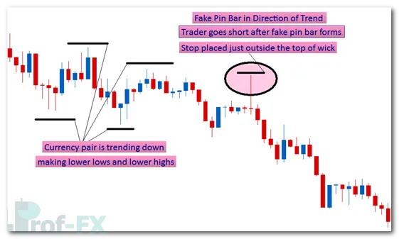 Once the trend is identified, fake pin bars can be used as confirmation of rejection against the trend, rather than signals to trade against it.