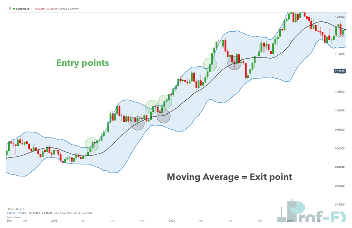 - Trading with the market trend using Bollinger Bands® as dynamic support and resistance