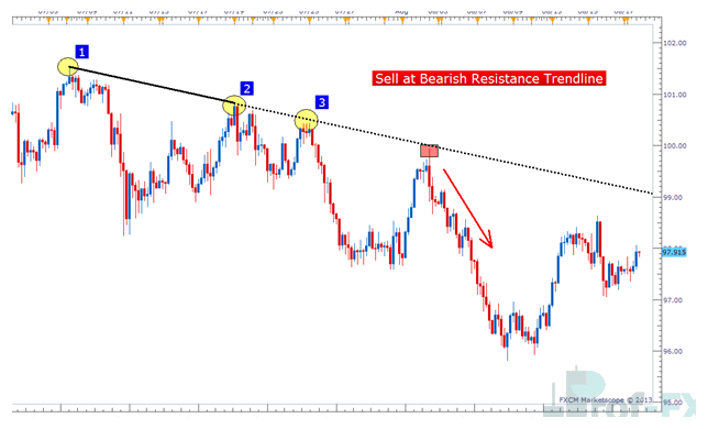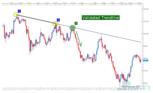 Note: Trading trendline breaks instead of bounces is also possible, but this is a more advanced technique and best covered separately.
