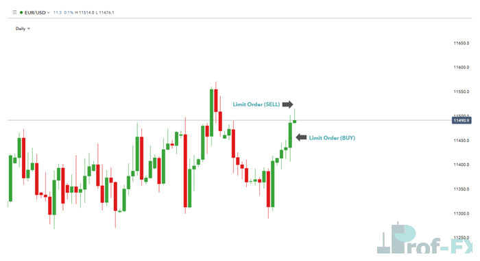 - If EUR/USD is trading at 1294 and a trader expects price to retrace before rising, a buy limit can be placed at 1.1200.