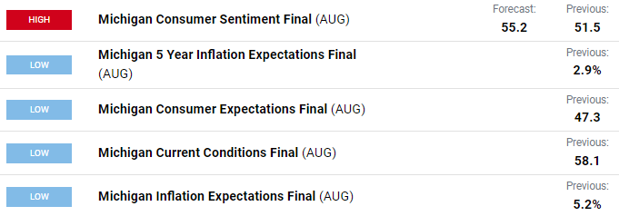 The index also incorporates consumer expectations around inflation, making it a valuable component for traders evaluating macroeconomic trends.