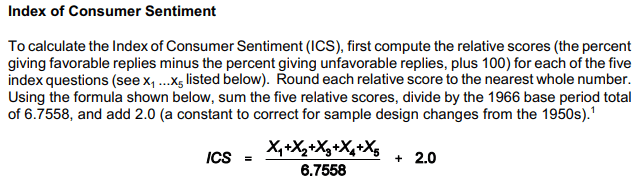 Understanding ICS is straightforward, even for beginning traders. Data gathered from survey responses is compiled and processed using a standardized formula—seen below—to produce the main sentiment reading. While component formulas may vary slightly, our focus remains on the headline ICS figure commonly referenced by analysts, economists, and traders.