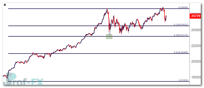 Fibonacci retracements are not limited to forex markets. They are also widely used in equity indices such as the Dow Jones Industrial Average.